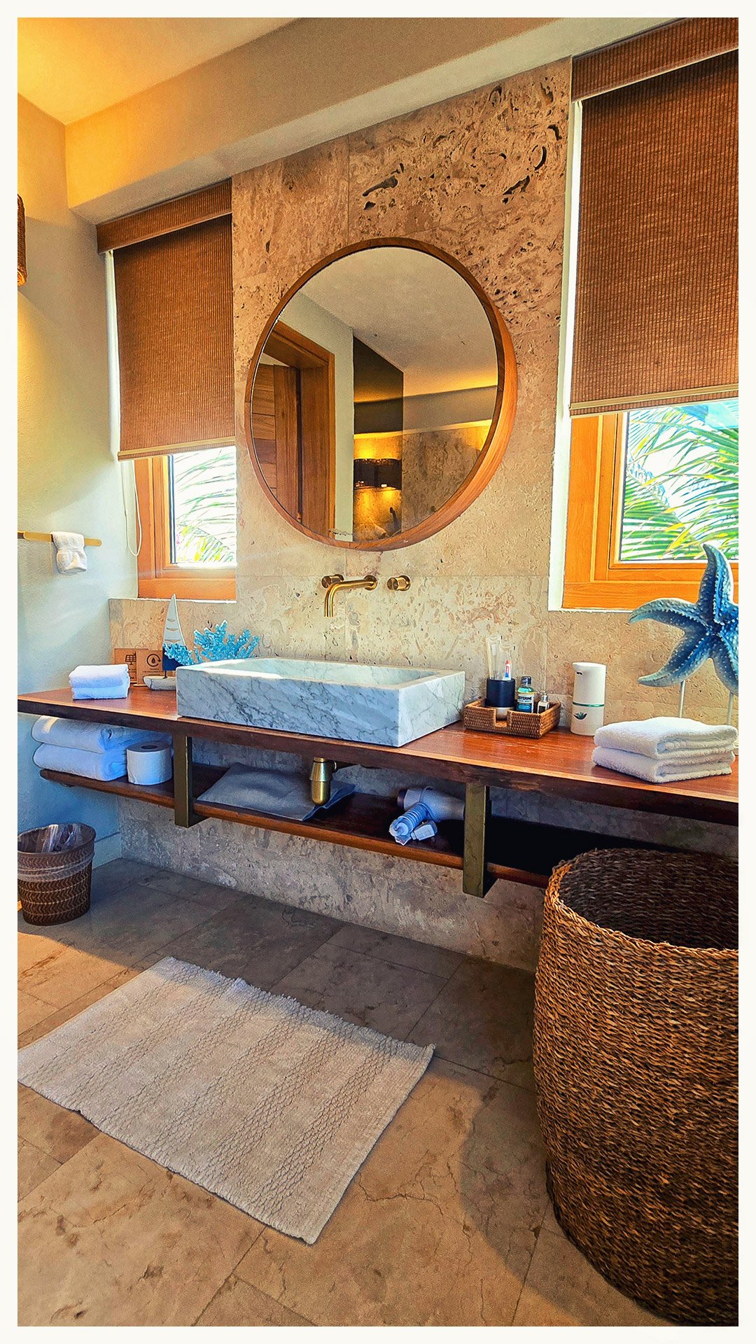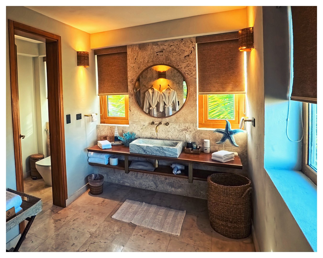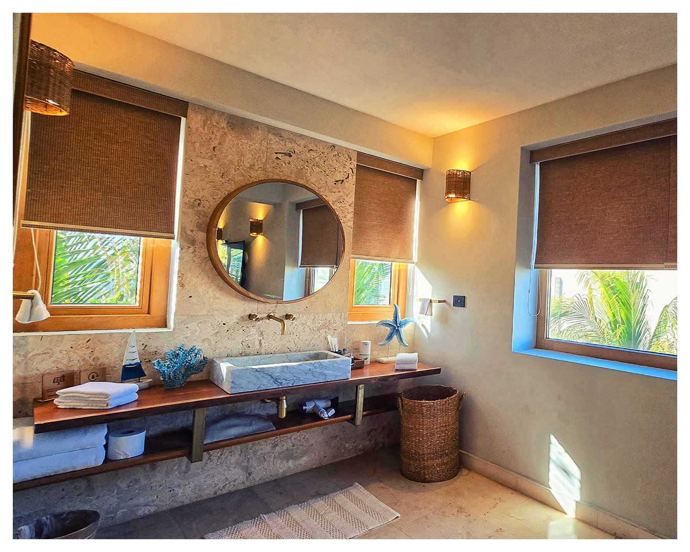 Este es un establecimiento Eco-Amigable, Elegante y Cómodo, que ofrece el Confort, Calidad y Ambiente de un Hotel 5 estrellas pero a la orilla del mar, donde podrás disfrutar de un mar en todas sus diferentes tonalidades de azul, verde y hasta rojo, por los corales y cargarse con toda esa buena energía que tiene nuestro mar Caribe.