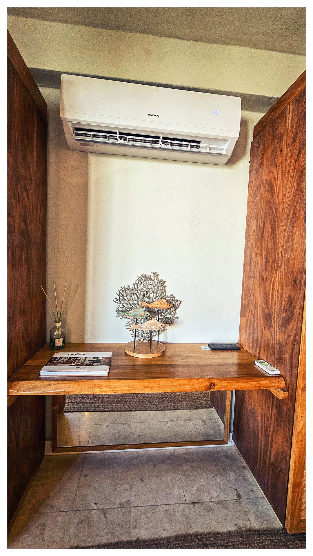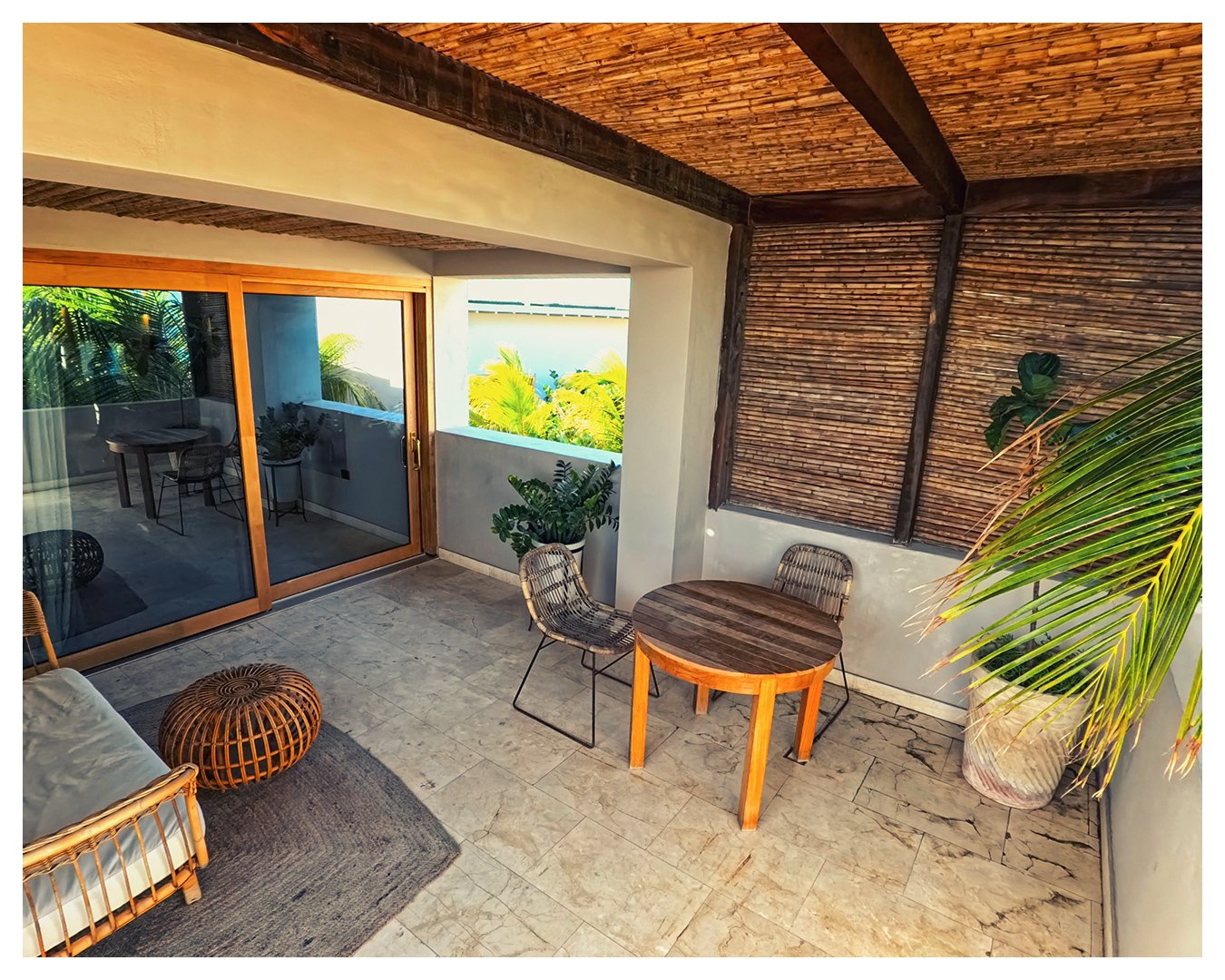 Ideal para aquellas personas que desean disfrutar de una experiencia inolvidable en nuestras instalaciones, tenemos el placer de ofrecerles nuestra categoría SUITE PREMIUM que cuenta con cama king size, TV por cable y A/C y una terraza privada con comedor, ideal para tomar sus comidas en la privacidad que solo Chelonia Casa Del Mar puede otorgarles.